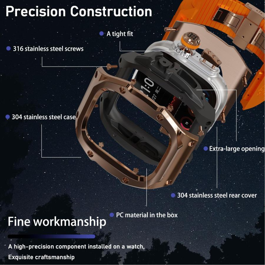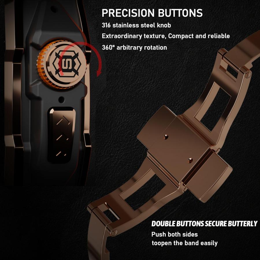 【男性的で豪華なスタイル】頑丈なバンドケースは、iwatchバンドを新しいレベルに引き上げ、高貴な味を表現。耐衝撃ケースは頑丈で剛性があり、シャープなラインのシリコンバンド。