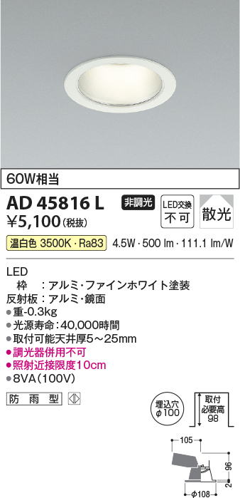 AD45816L コイズミ照明 FineWhite ダウンライト [LED温白色][ファインホワイト]