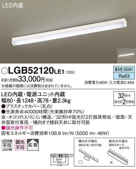 在庫品 LGB52120LE1 パナソニック Hf32形×2灯相当 多目的 シーリングライト [LED昼白色][32形Hf蛍光灯2灯相当]