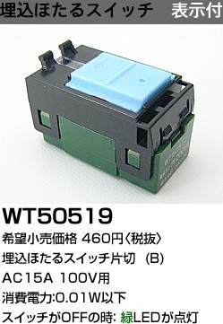 在庫品 WT50519 パナソニック コスモシリーズワイド21配線器具・電材 埋込ほたるスイッチB (片切)(表示付)(100V)(WT5051)