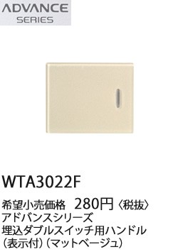 在庫品 WTA3022F パナソニック ADVANCE SERIES アドバンスシリーズ 埋込スイッチ用ダブルハンドル (表示付)(マットベージュ)