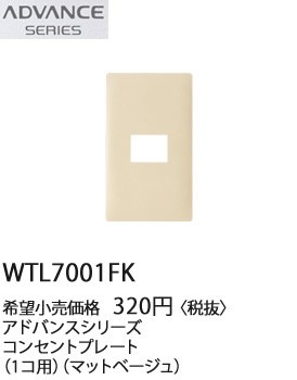 在庫品 WTL7001FK パナソニック ADVANCE SERIES アドバンスシリーズ コンセントプレート (1コ用)(マットベージュ)