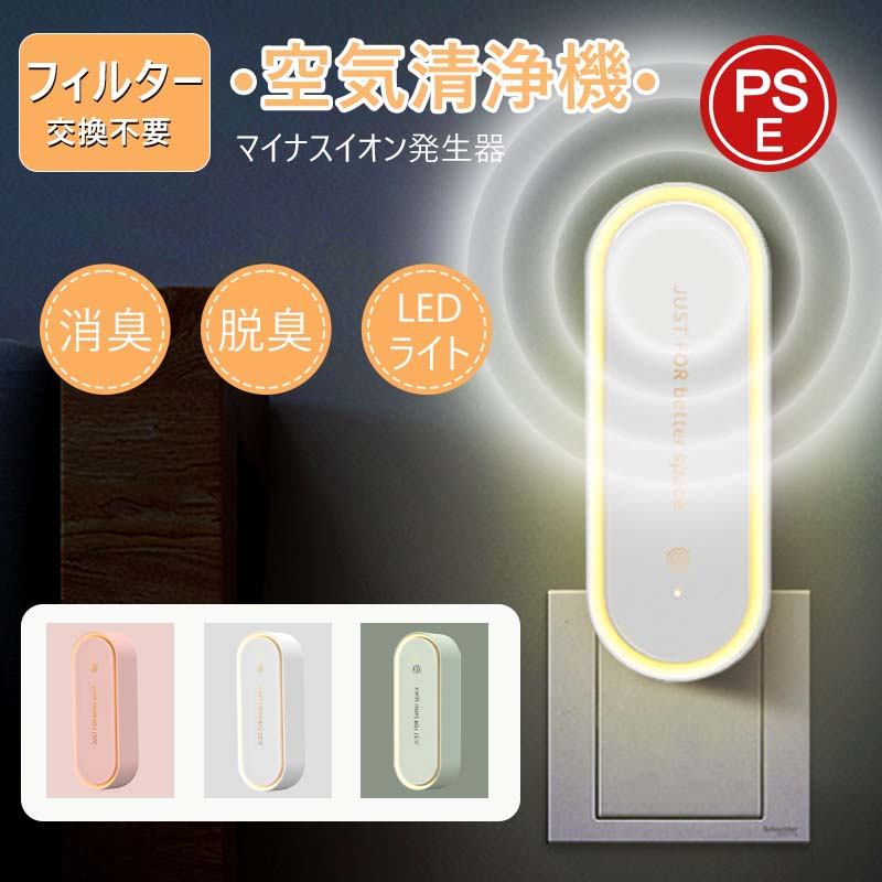 ミニ空気清浄機 イオン発生器 ライト付き 除菌 ウイルス除去 消臭 脱臭 脱臭機 小型 静音 リビング 部屋 トイレ タバコ 煙 悪臭 除菌