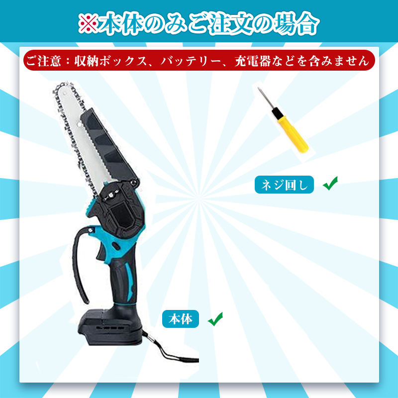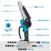 チェーンソー 充電式 電動 小型 6インチ コードレス バッテリー付かない 安全ロック 片手 軽量 強力 農業 PSE認証済