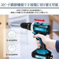 25+2段階トルク調整機能によって、素材に合わせて自由にトルクを調整可能です。最大トルクは28N.mに達し、 電動ドリルの回転スピードは2段階(0~450RPM/0~1650RPM)が切り替え、その以上トリガーを握る力の強弱で無段変速が可能で、スピード調節とトルク調節機能で幅広い材質に傷をつけず、きれいな組み立てができます。