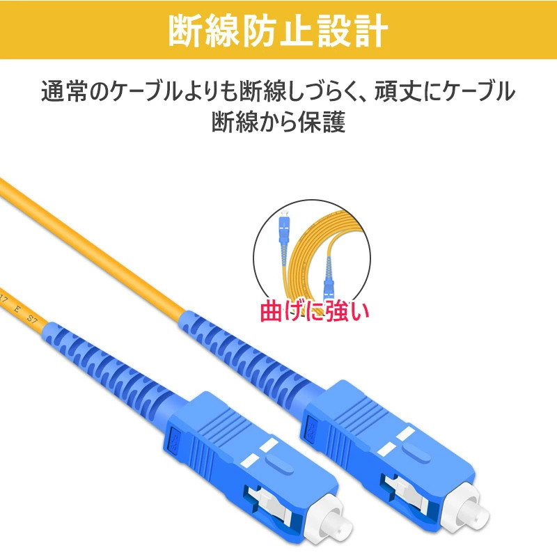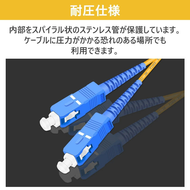 光ファイバーケーブル 3m 両端SCコネクタ付き 宅内光配線コード 耐圧 光ケーブル 光コード 光パッチケーブル シングルモード パッチ ケーブル コード