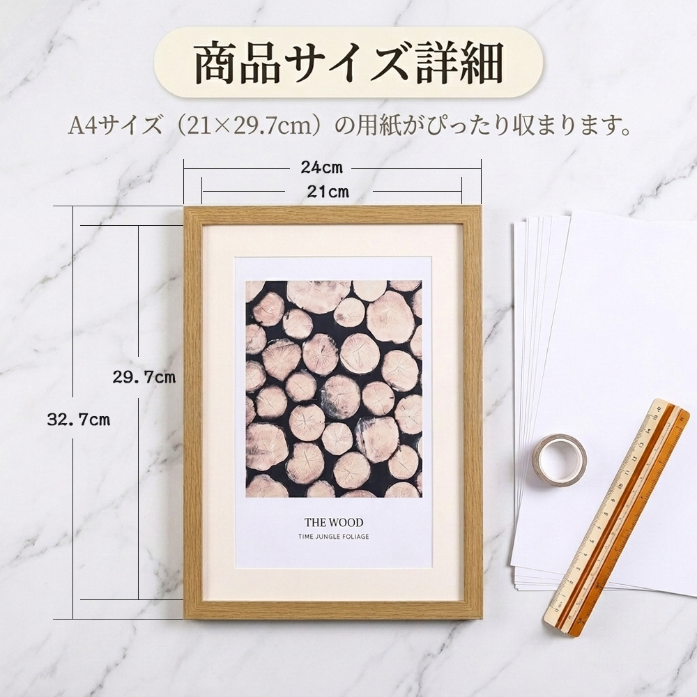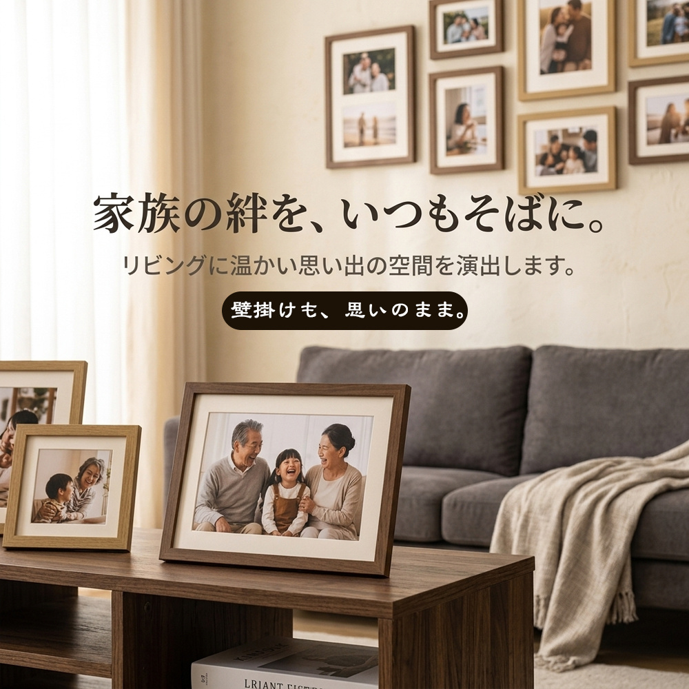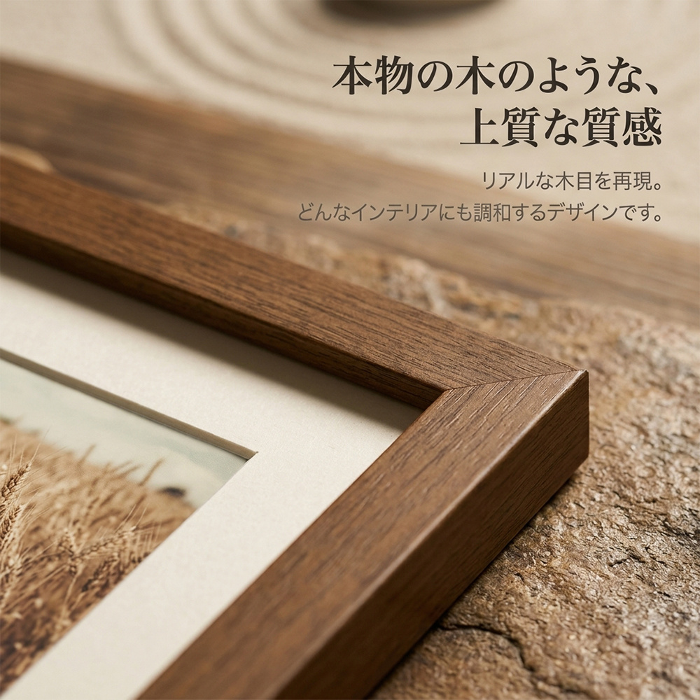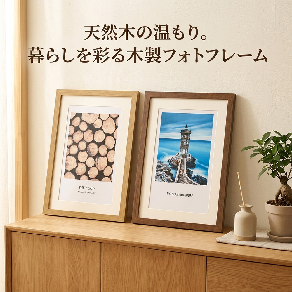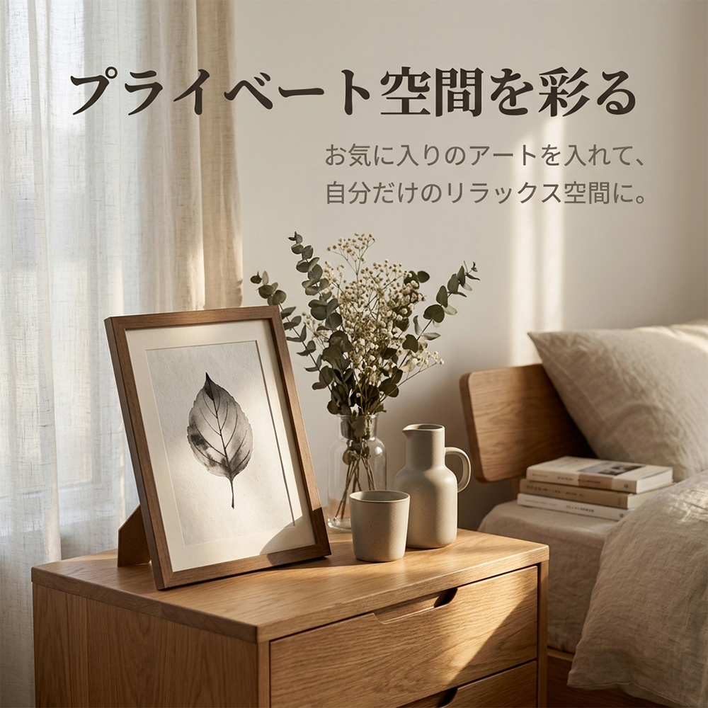 どんなお部屋にも馴染むシンプルな木製フレーム。飾るだけで空間がぐっとおしゃれに。