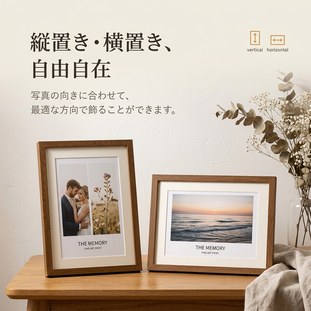 写真やポスターに合わせて縦・横どちらでも使用OK。
