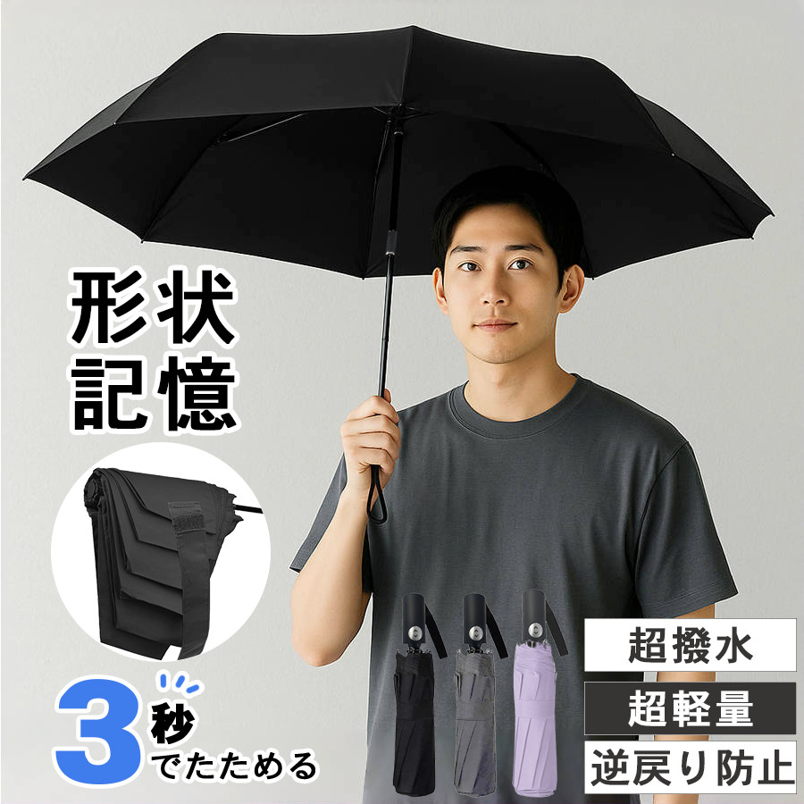 折りたたみ傘 メンズ 形状記憶 軽量 大きい 自動開閉 逆戻り防止 形状安定 折り畳み傘 コンパクト 無地 丈夫 風に強い 超撥水 梅雨 通勤 通学