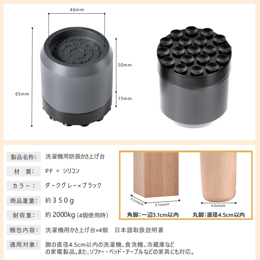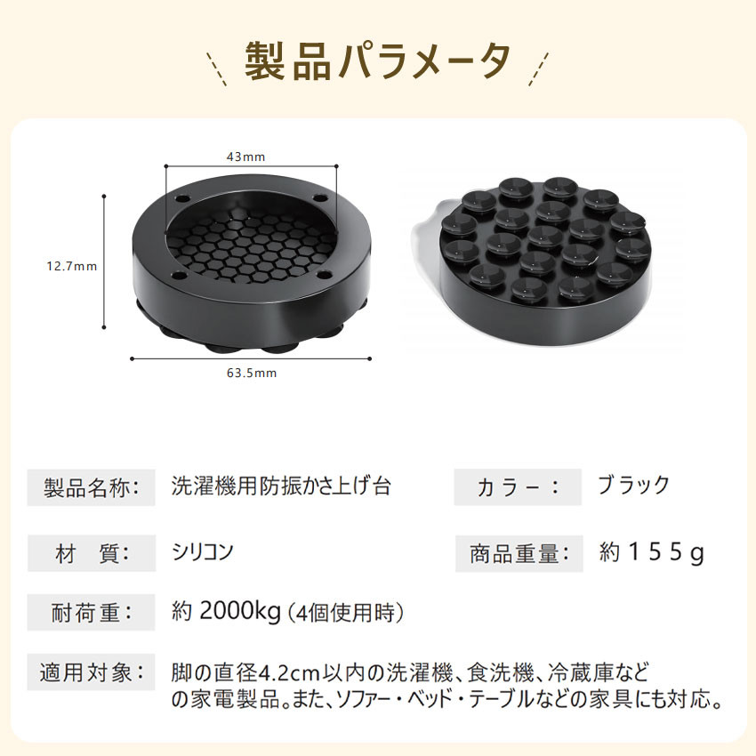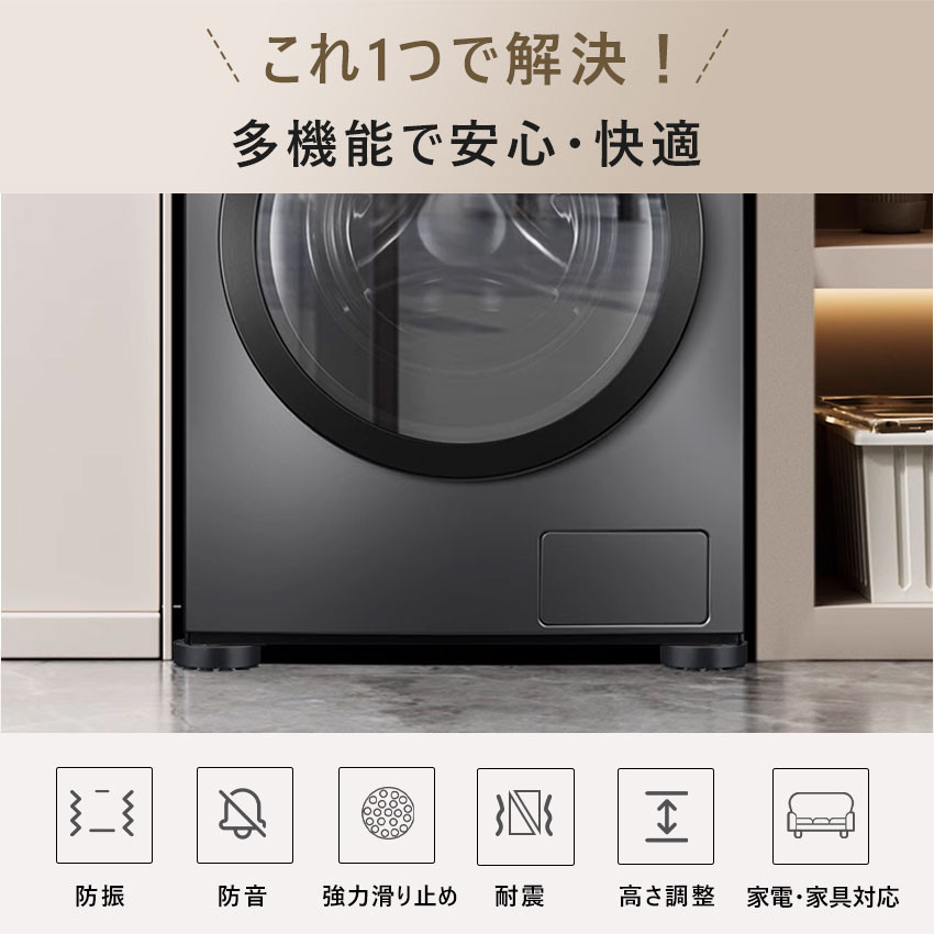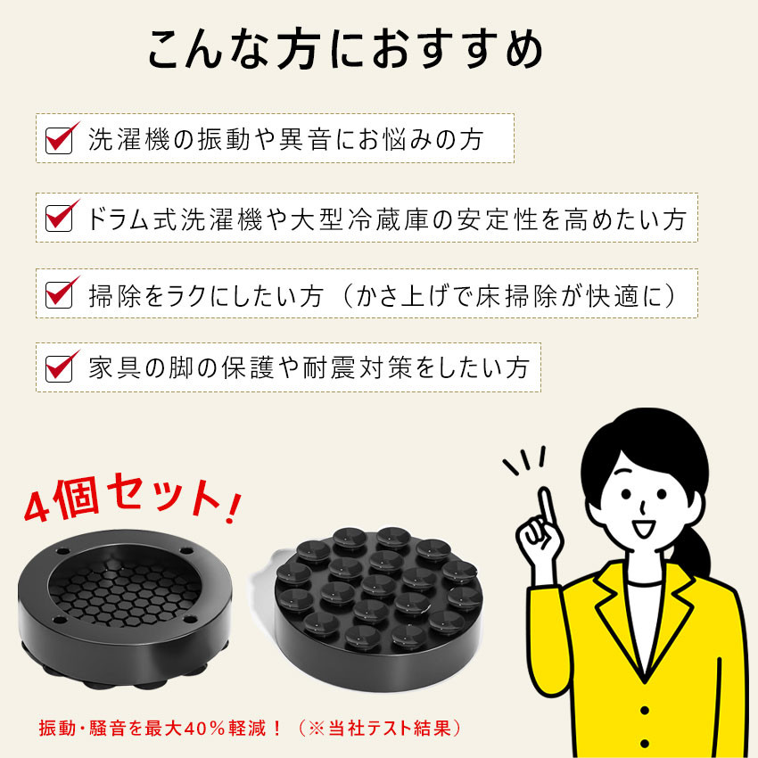 洗濯機 かさ上げ 洗濯機 かさ上げ台 置き台 4個セット 耐震 防音 滑り止め 振動吸収 耐荷重500kg 洗濯機台 防振マット 洗濯機台 冷蔵庫 家具対応