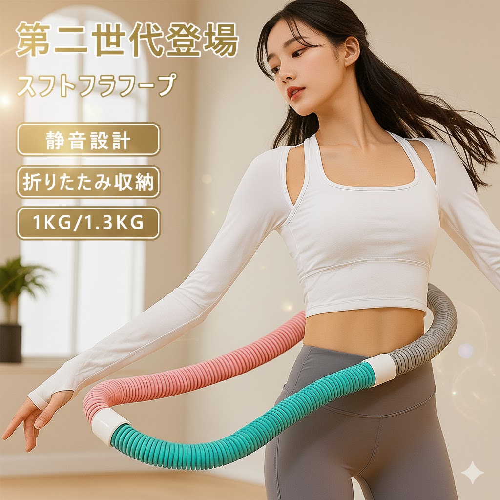 フラフープ ソフトフラフープ ダイエット 折りたたみ 有酸素運動 腹筋 運動不足 静音設計 脂肪燃焼 多機能 健康グッズ ウエスト引き締め 携帯便利 1kg 1.3kg