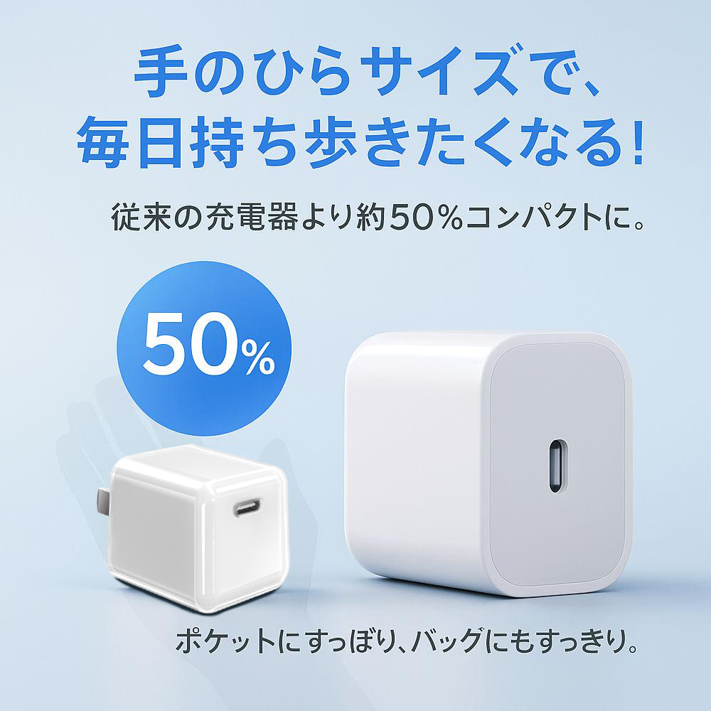 【手のひらサイズなのに20W急速充電】