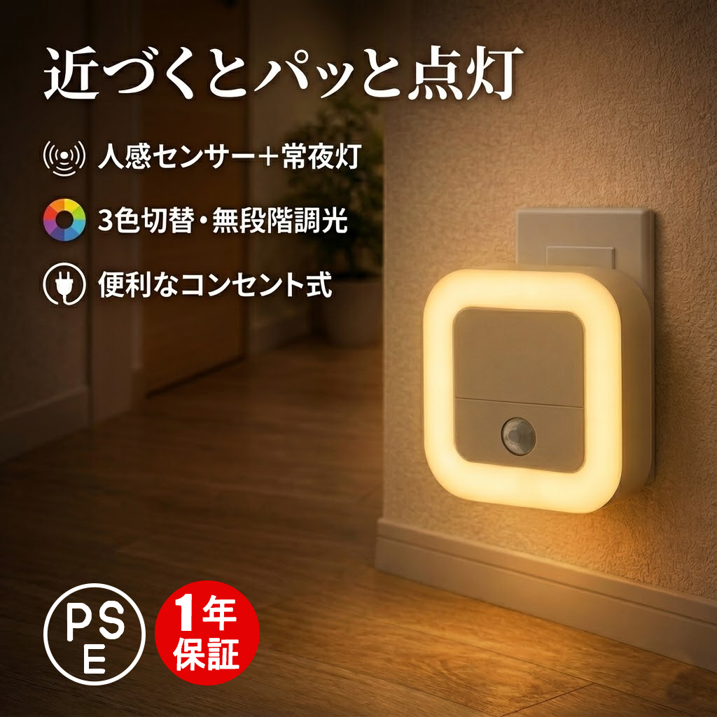 センサーライト LED 常夜灯 人感センサーライト コンセント式 充電式 調光調色 室内 小型 足元ライト 省エネ 玄関 廊下 トイレ 階段 明るい