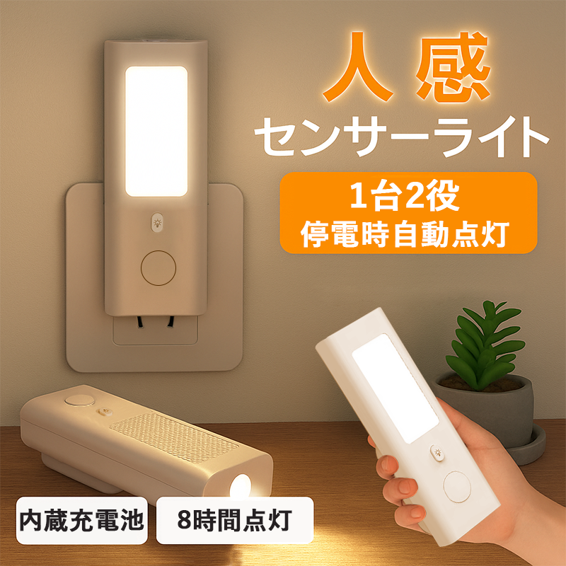 センサーライト 人感センサーライト 足元ライト 室内 充電式 コンセント LED 懐中電灯 停電 自動点灯 足元灯 フットライト 省エネ 防災
