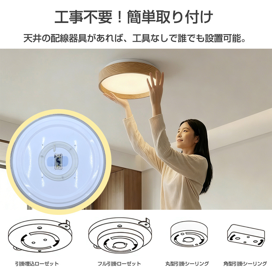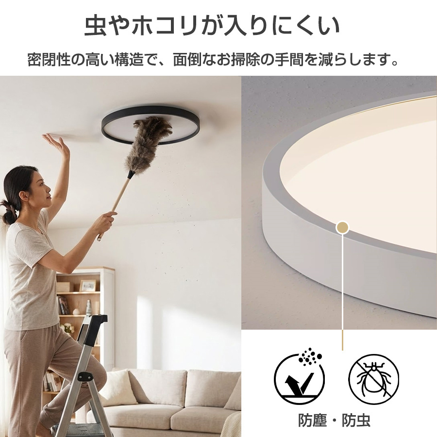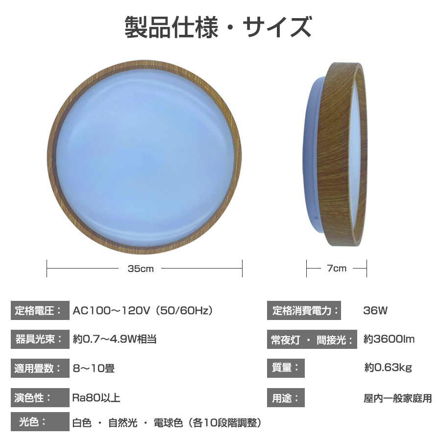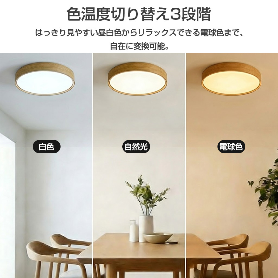 調光調色10段階×3色温(白色/中性光/電球色)+電球色バックライト。8〜10畳のメイン照明として、作業もくつろぎも1台で。