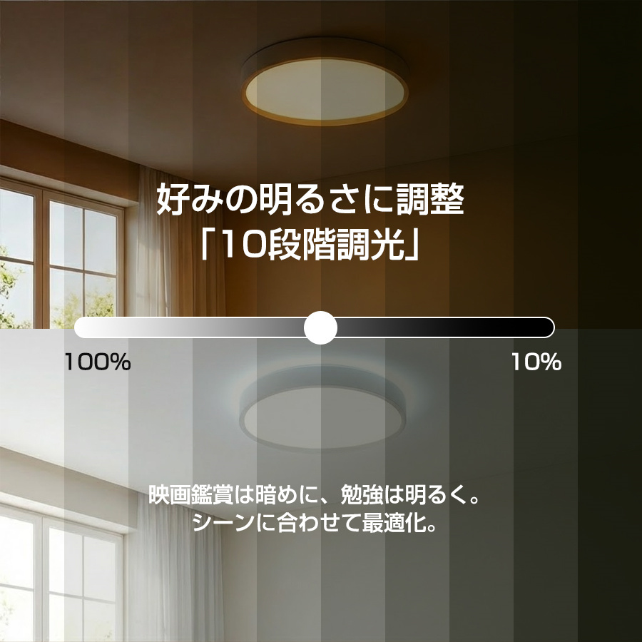 リモコンで明るさを10段階調整。時間帯や用途に合わせて細かくコントロールできます。
