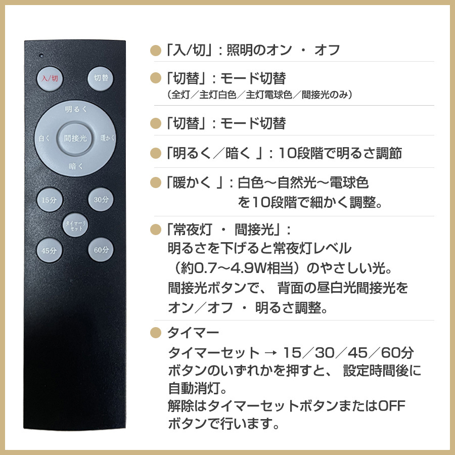 機能:10段階調光調色/明かりメモリ/おやすみタイマー(15分、30分、45分、60分)/常夜灯