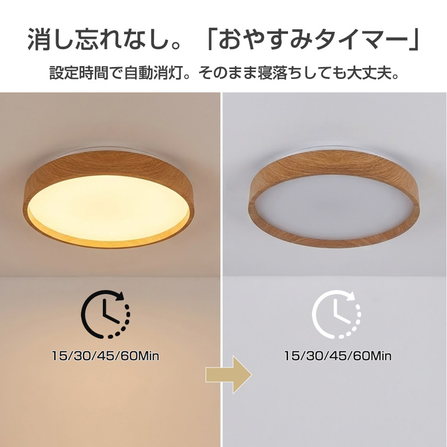 15/30/45/60分から選んで自動消灯。消し忘れ防止にも便利です。