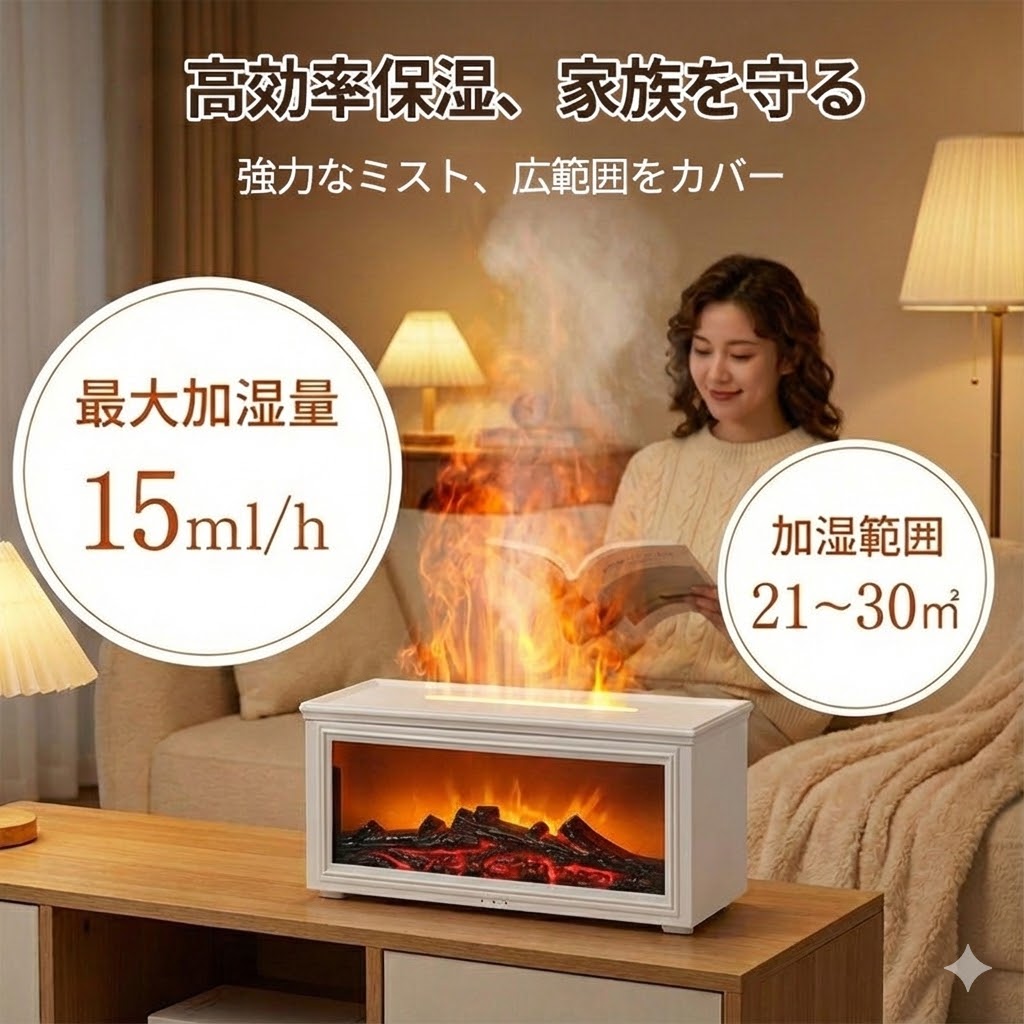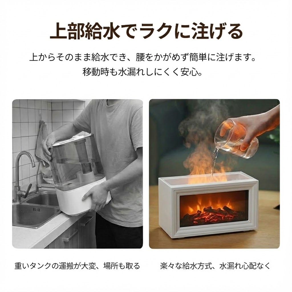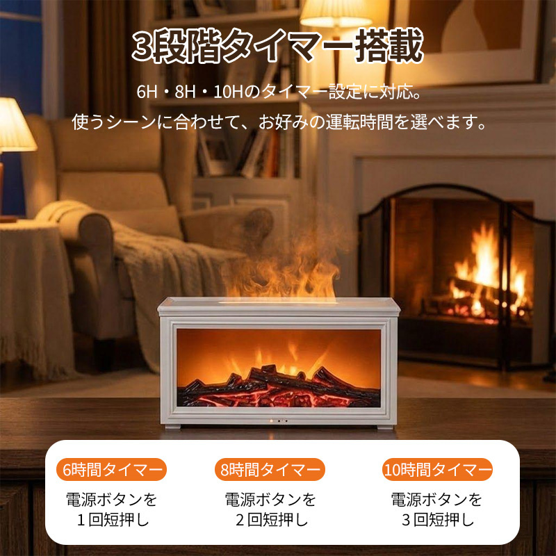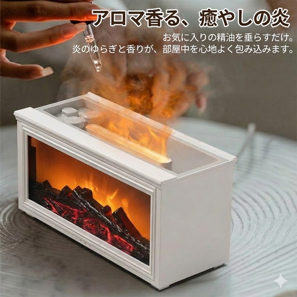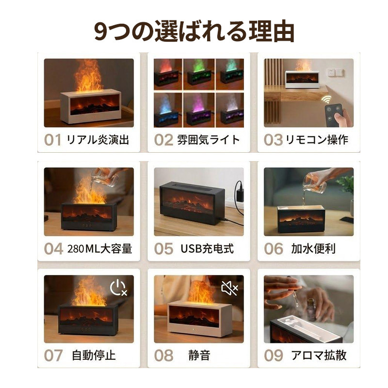 加湿器 超音波式 卓上 アロマディフューザー 立体炎 大容量 タイマー リモコン付き 給電式 上部給水 静音 空焚き防止 香 乾燥 癒し おしゃれ おすすめ
