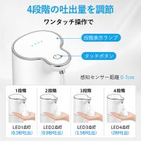 このソープディスペンサーは400mlの大容量タンクを搭載しており、約500回の使用が可能。4段階の吐出量調整に対応し、用途や家族の人数に応じて最適な量を選べます。詰め替え頻度も少なく、経済的かつエコです。