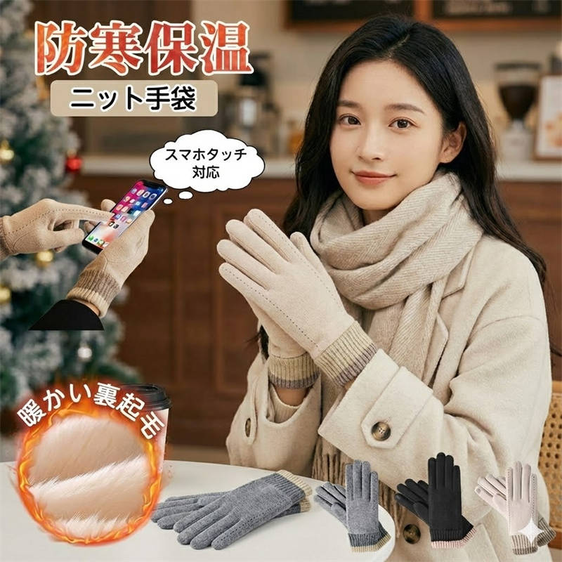 手袋 レディース 手ぶくろ グローブ ニット 裏起毛 防寒 スマホ対応 暖かい 静電気防止 自転車グローブ 可愛い スマホ手 通勤 通学 冬