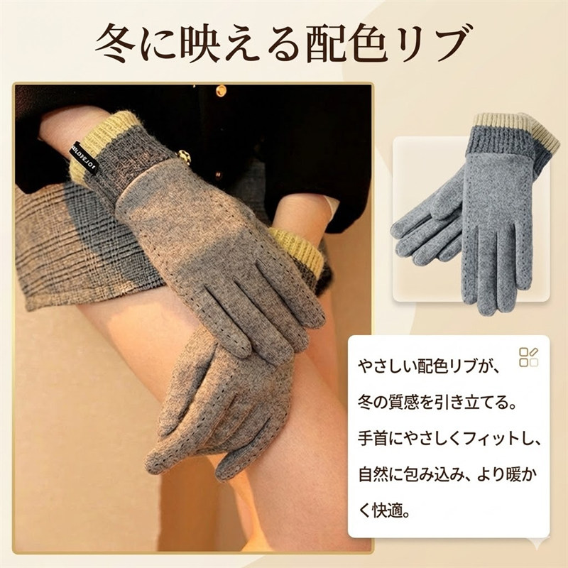 外側の高密度アルパカ混紡と内側のふわふわ起毛が冷気をしっかり遮断。指先までじんわり暖かく、冬のお出かけを快適にしてくれる保温性抜群の手袋です。