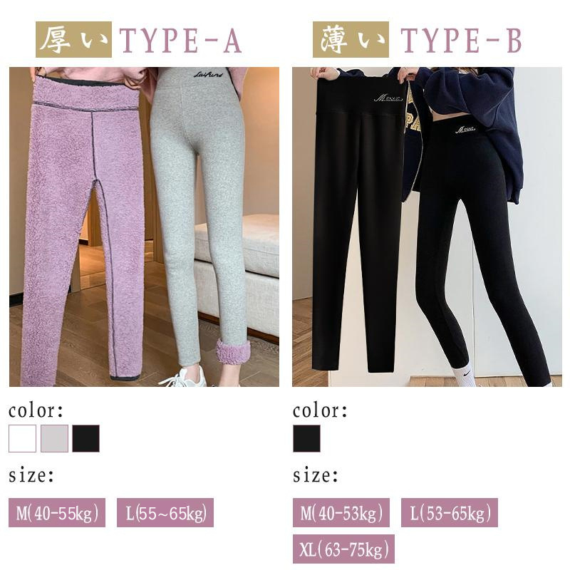 サイズ:多様なサイズ展開の裏起毛レギンスはさまざまな体型にフィットします。