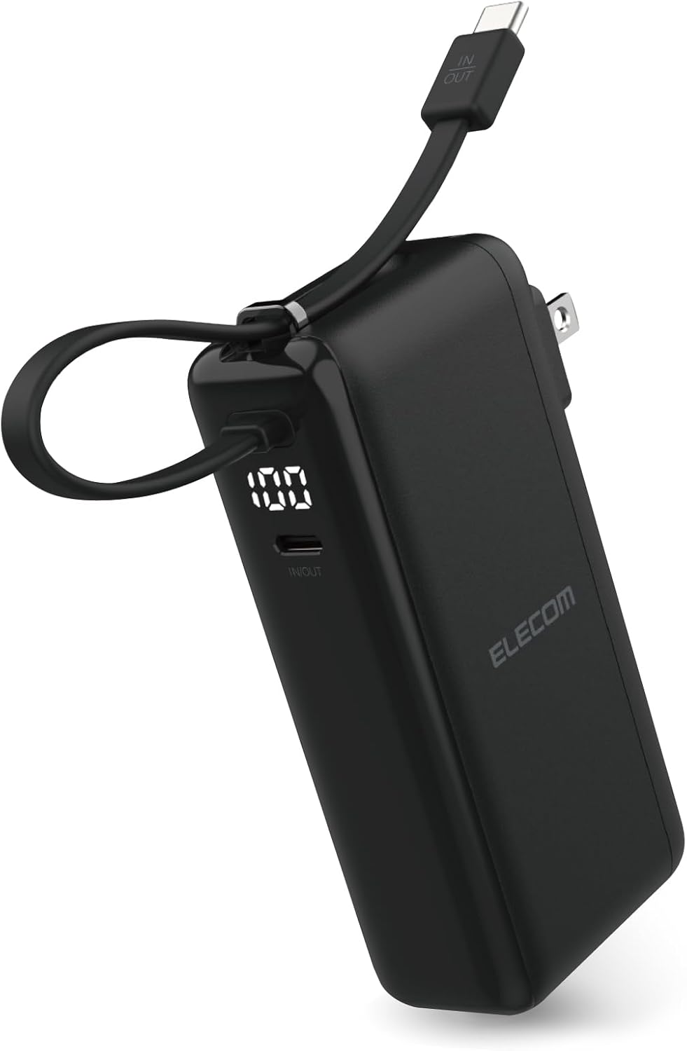エレコム モバイルバッテリー 10000mah 大容量 PSE認証 急速充電 PD コンセント一体型 ケーブル内蔵 35W タイプC EC-C51L 公式店 日本メーカー
