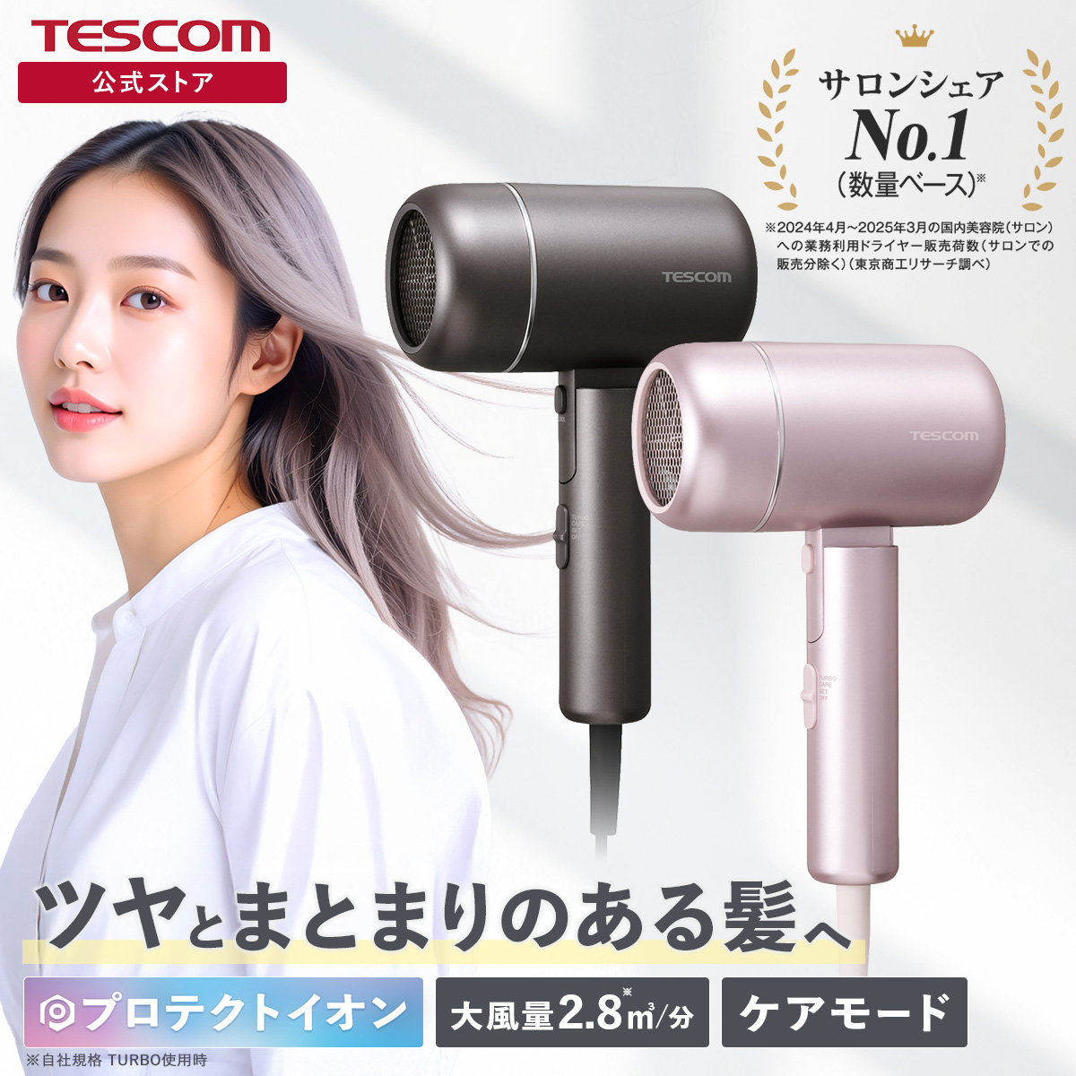 ■1965年の創業以来、テスコムが製造・開発してきた業務用ドライヤー『Nobby』は、高い性能からサロンシェアNo.1(数量ベース)(※)を獲得。その技術力が活かされています。