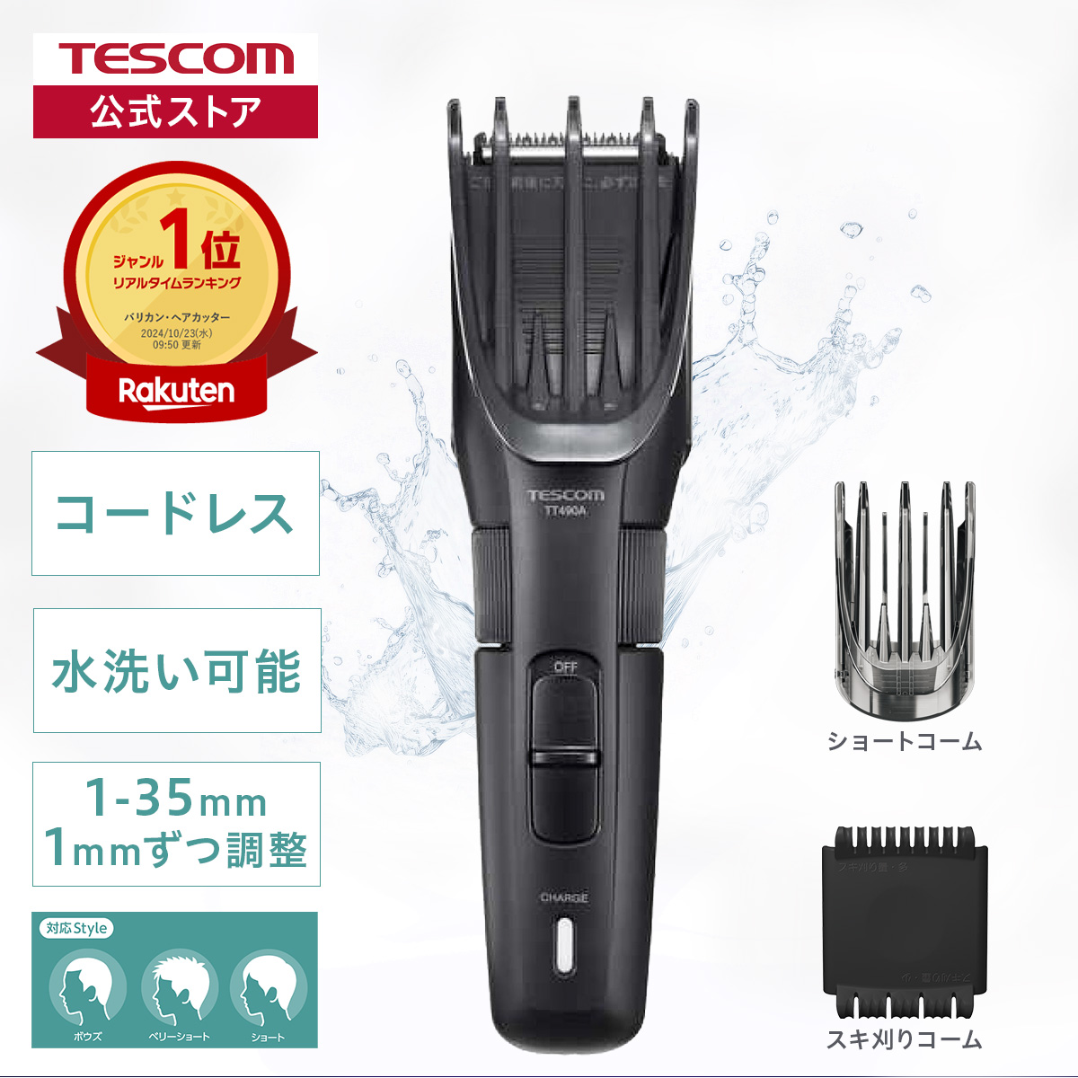 ■付属品:ショートコーム / スキ刈りコーム / 電源アダプター / 掃除用ブラシ / TESCOMオイル