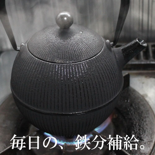 南部鉄瓶でお湯を沸かすと、味がまろやかになり、鉄分補給にもなります。
