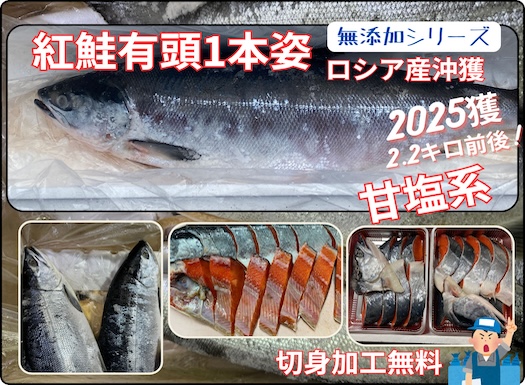北洋紅鮭(千島沖獲)2.2キロ前後 2025年物 天然紅鮭 甘塩紅鮭 紅鮭1本姿 切身加工無料 無添加シリーズ