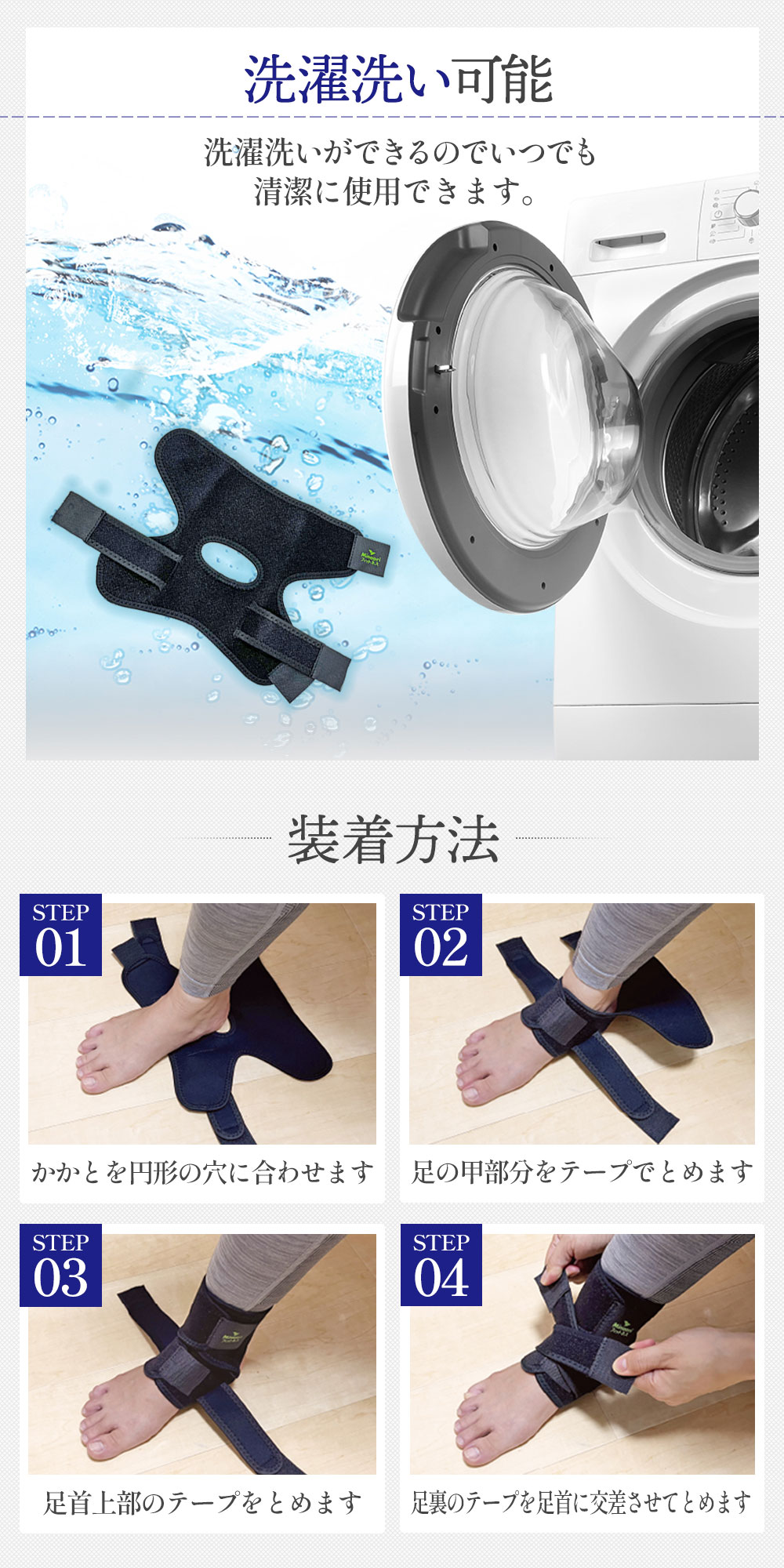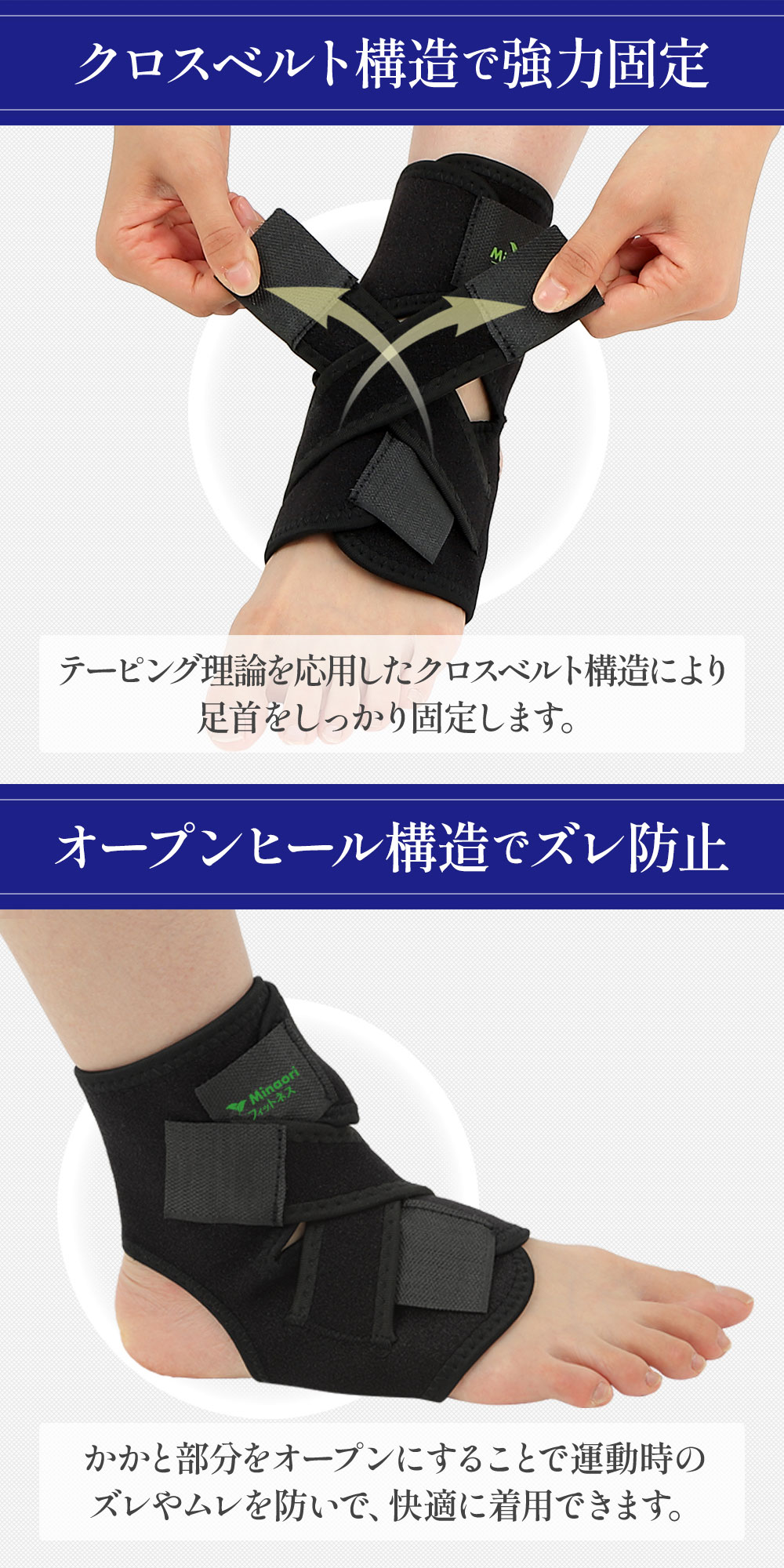 【ソックスタイプとクロスベルトで強力固定】簡単に装着できズレにくく、より安定したサポートが可能です。
