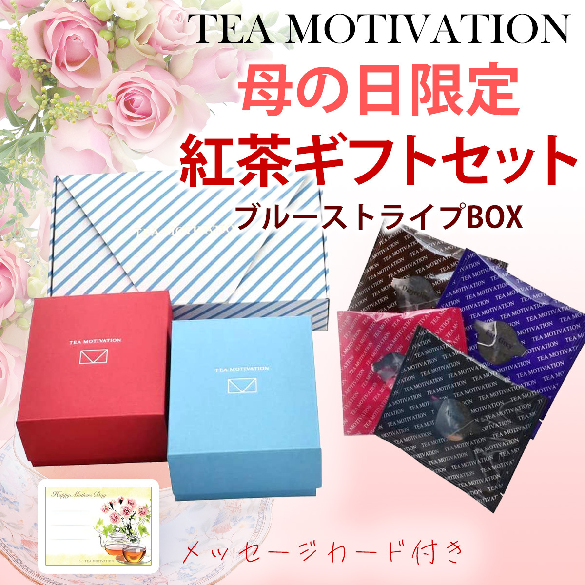 母の日限定 ギフト TEA MOTIVATION 22包 詰め合わせ 4種アソート ストライプBOX オリジナルメッセージカード付 ブルー