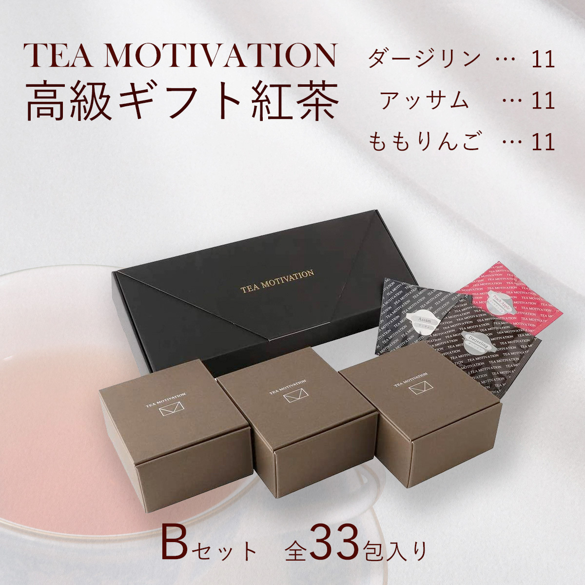 TEA MOTIVATION 紅茶 ギフト ティーバッグ Bセット33包 ダージリン アッサム ももりんご 各11包入 ギフト包装済 入学祝い 春ギフト プレゼント