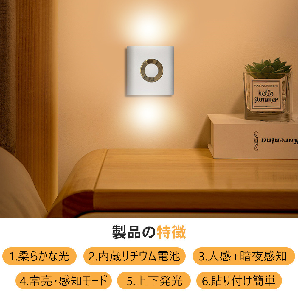 センサーライト 人感センサーライト led 上下発光 充電式 足元灯 室内 玄関 廊下 ナイトライト 常夜灯 フットライト 目に優しい 省エネ 防災