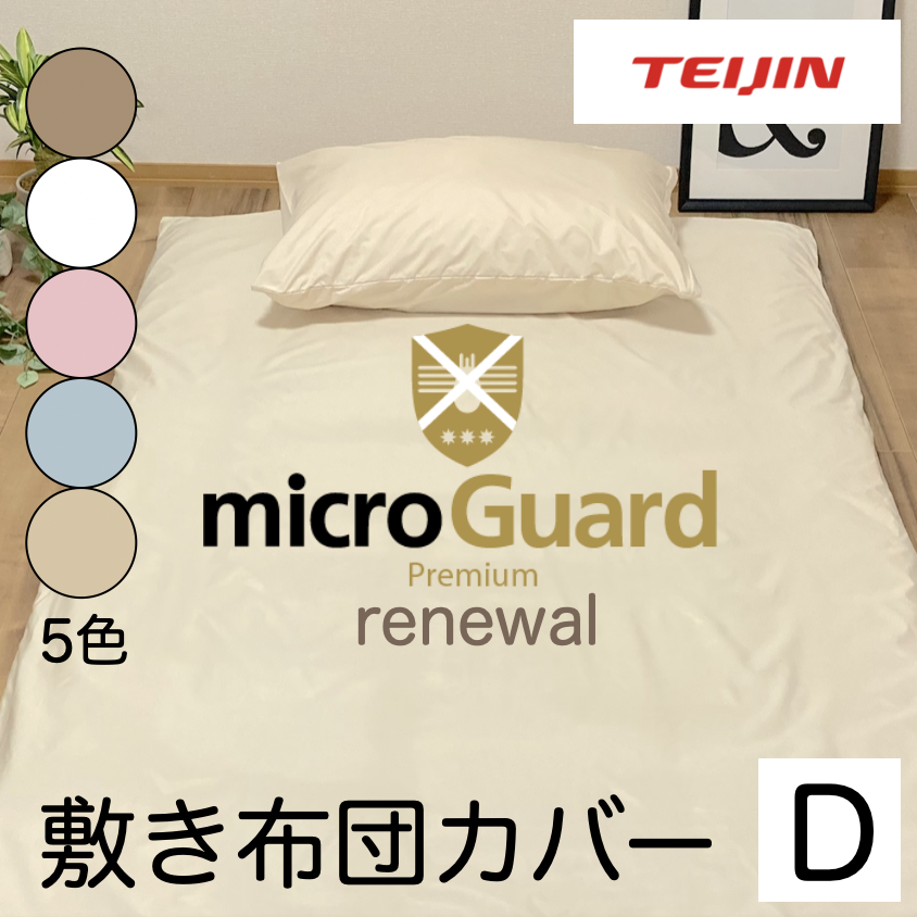 敷き布団カバー ダブル D 145×215cm テイジン ミクロガードプレミアム 防ダニ 防ダニ薬剤不使用 なめらか肌触り ダニの死骸 フンまで対策