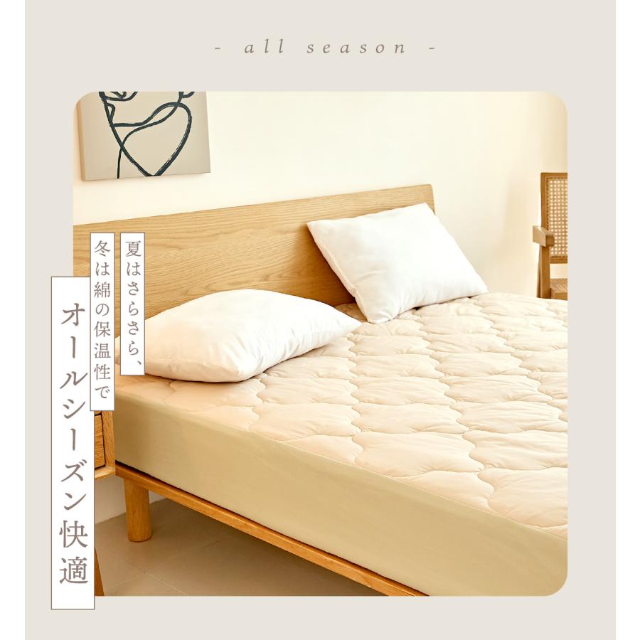 敷きパッドとベッドパッドが合体した 手軽で便利な一体型ボックスシーツ。