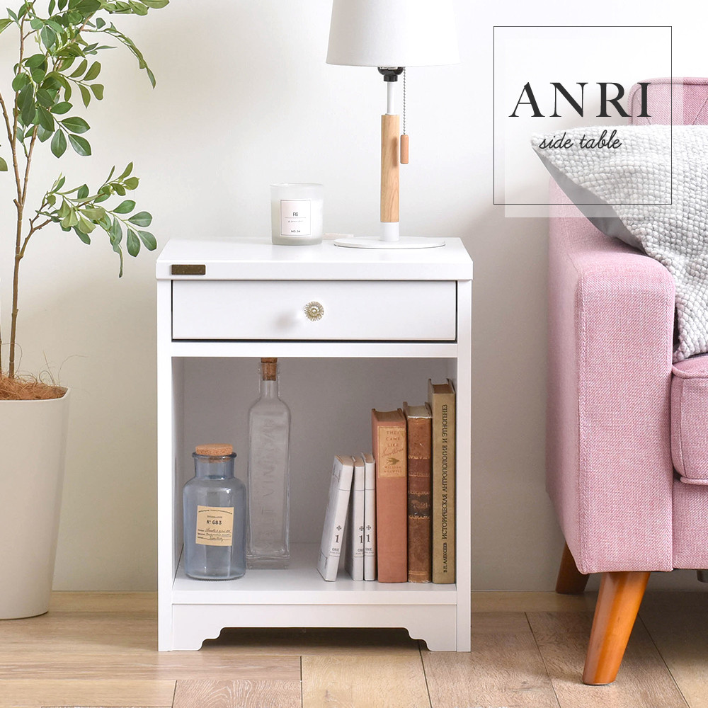 ANRI(アンリ)サイドテーブル ナイトテーブル(40cm幅) an50-40t-wh 新品