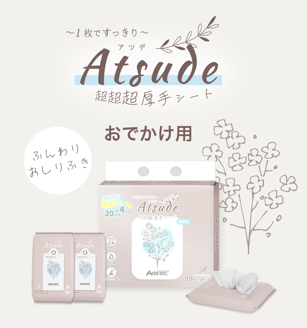 AIRFRIC おしりふき 厚手 無添加 無香料 ノンアルコール 蓋つき 大判 赤ちゃん ベビー 大容量 おしり拭き お出かけ用 携帯用 持ち歩き Atsude 10枚*24個 WT003