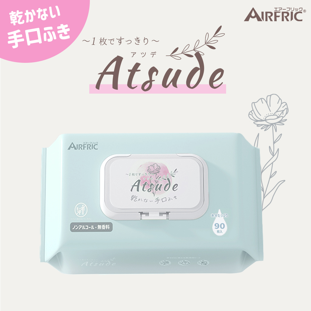 AIRFRIC 手口ふき 厚手 無添加 無香料 ノンアルコール 蓋つき 大判 赤ちゃん ベビー 大容量 手口拭き ウェットティッシュ Atsude 90枚×12個 WT004