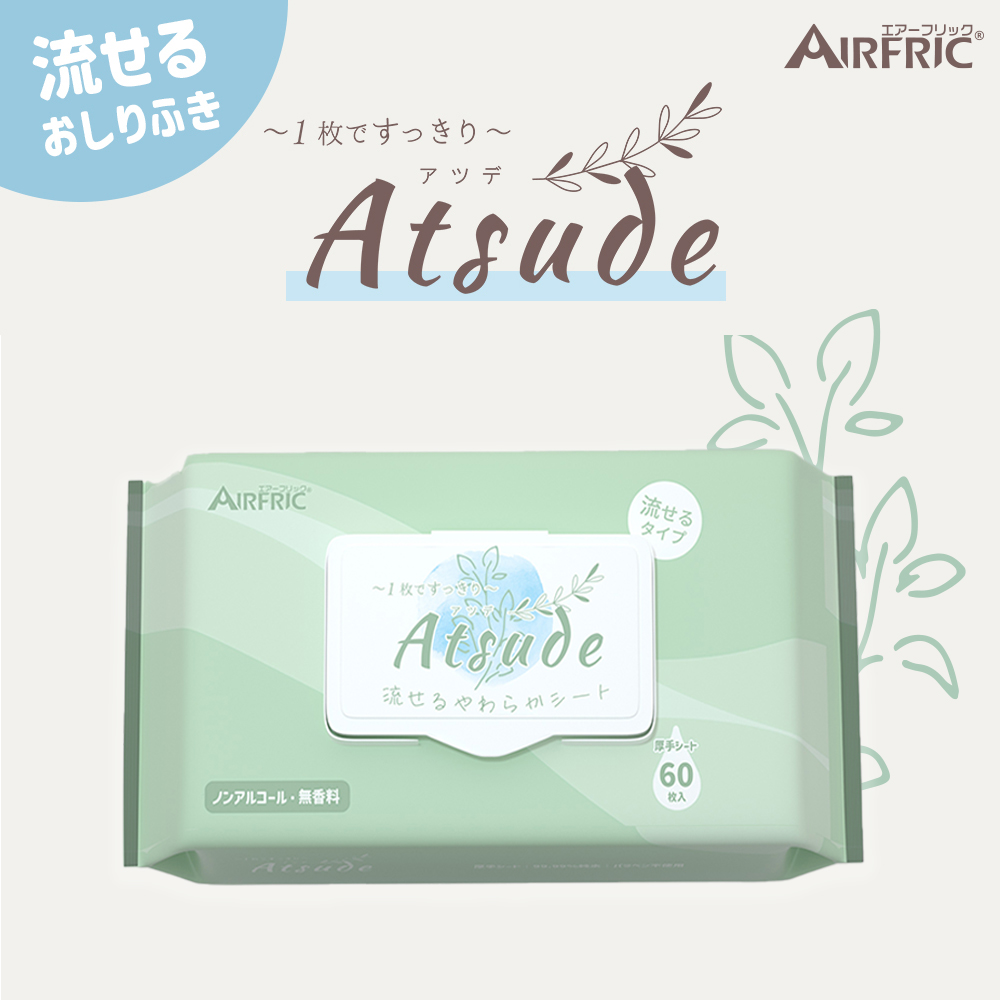 AIRFRIC 流せるおしりふき 厚手 無添加 無香料 ノンアルコール 蓋つき 大判 赤ちゃん ベビー 大容量 流せる おしり拭き Atsude 60枚×10個 WT005