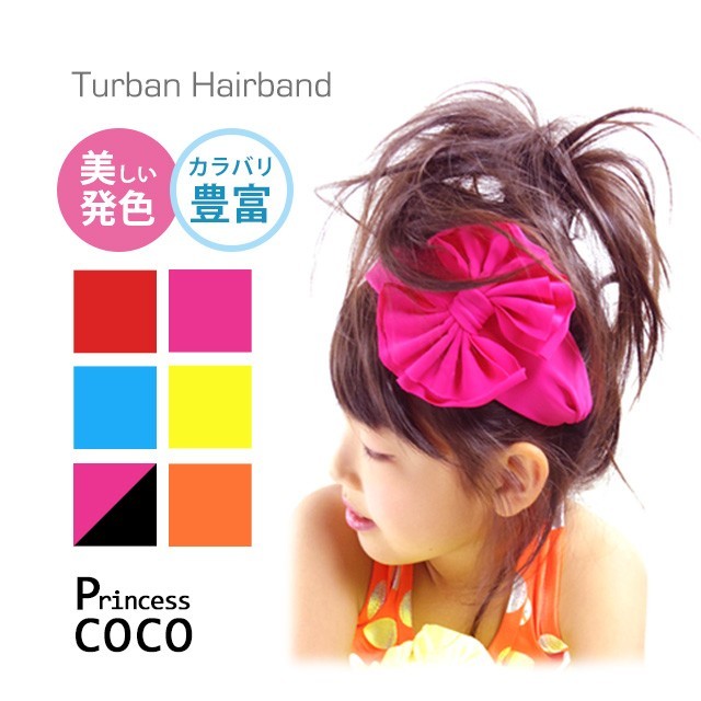 子供 ヘアアクセサリー ターバン カチューシャ キッズ ジュニア フリーサイズ 衣装 ダンス衣装 黒 蛍光 ピンク 黄色 オレンジ ブルー 赤 発表会 韓国