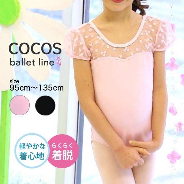 バレエ レオタード 子供 スカートなし 半袖 パフスリーブ キッズ ジュニア シンプル バレエ用品 練習着 ピンク 黒