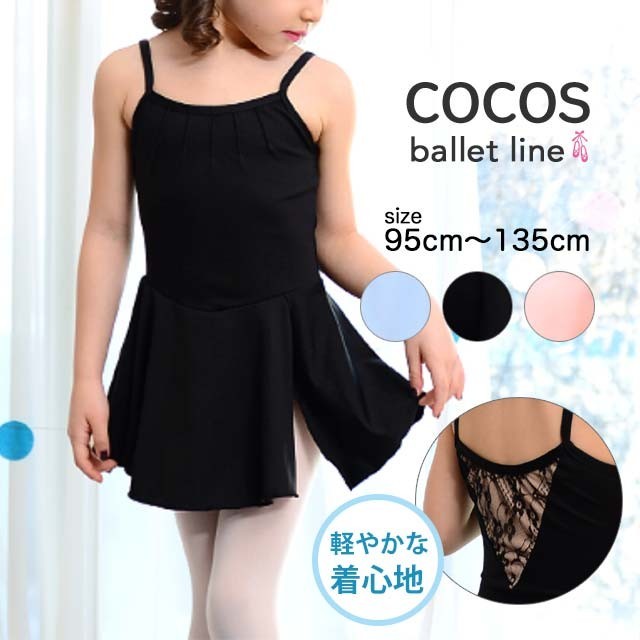 バレエ レオタード スカート付 子供 キャミソール スリット キッズ 練習着 バレエ用品 黒 ピンク スカイブルー