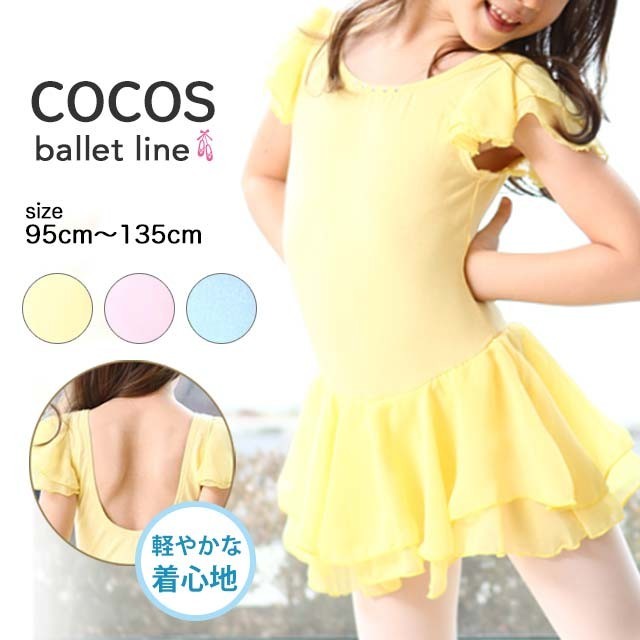 バレエ レオタード スカート付 子供 シフォン半袖 フリル キッズ 練習着 レッスン着 バレエ用品 イエロー ピンク ブルー