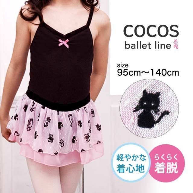 バレエ レオタード スカート付き 子供 ノースリーブ 猫 キッズ 練習着 レッスン着 黒 ピンク 95cm 100cm 110cm 120cm 130cm 140cm