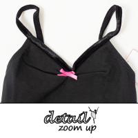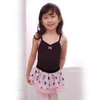 黒のキャミソール型のレオタードに可愛いピンク色のスカート付き