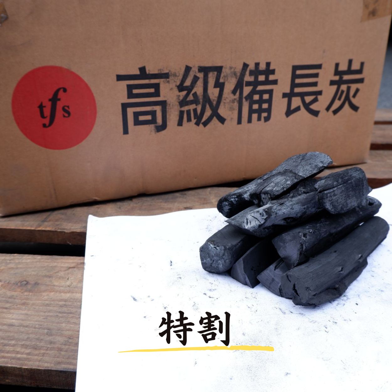 TFS ラオス産 天然備長炭 荒割大 15kg 1箱- 業務用 白炭 キャンプ用 BBQ用 長時間燃焼 強火力 灰少なめ