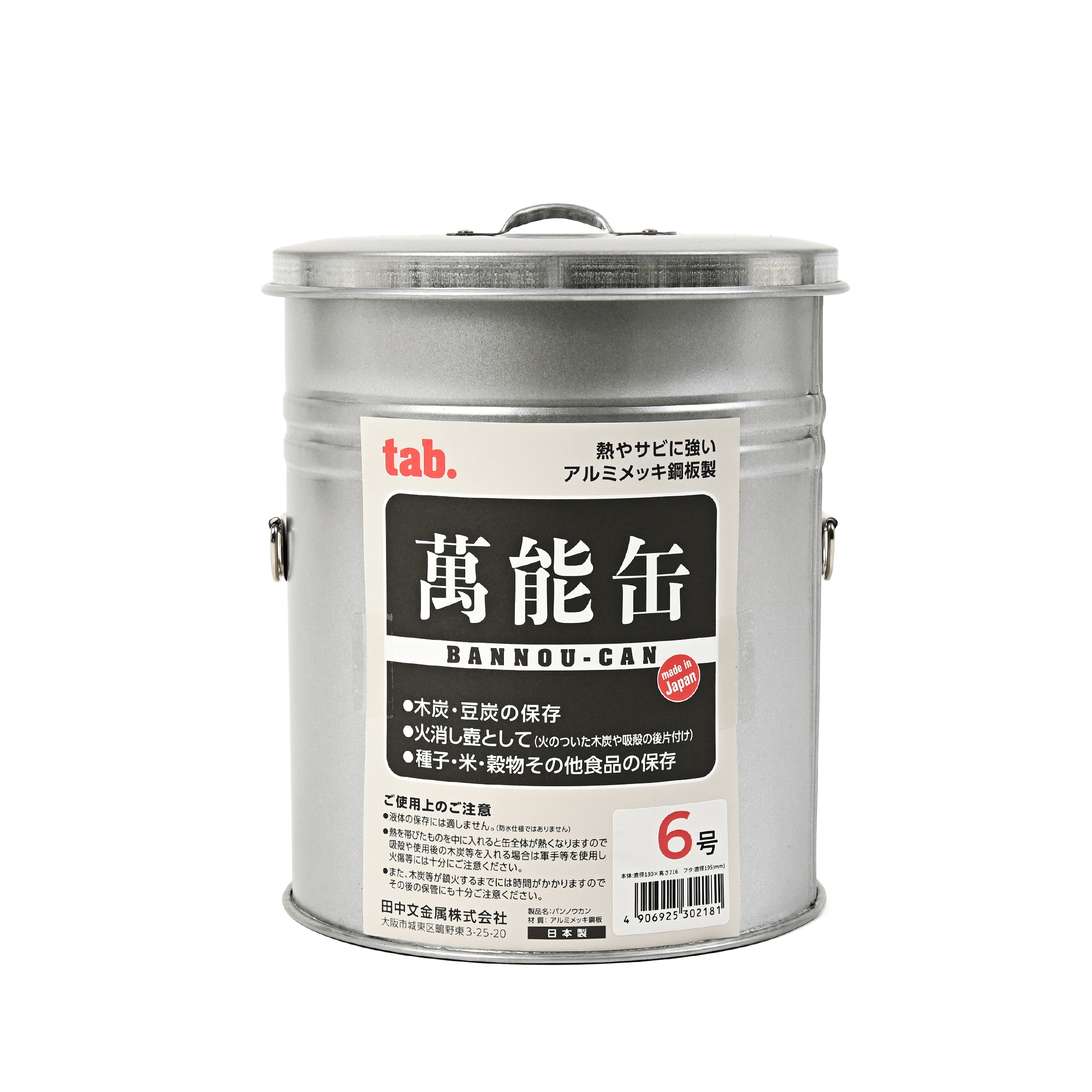 万能缶6号 - 火消し壺(萬能缶) アルミメッキ鋼板 水消火&酸欠消火 消し炭の再利用可能 エコ コンパクト キャンプ用